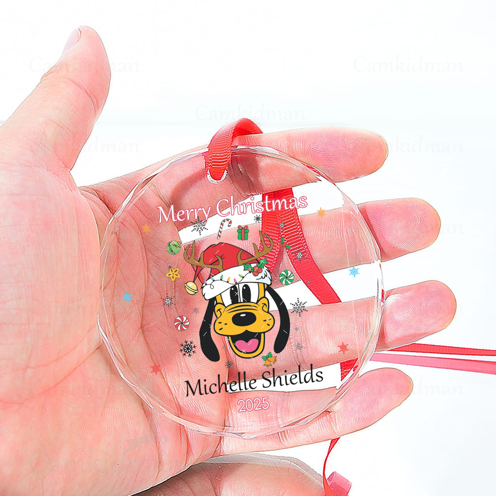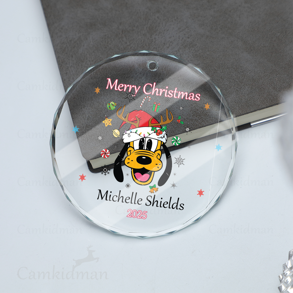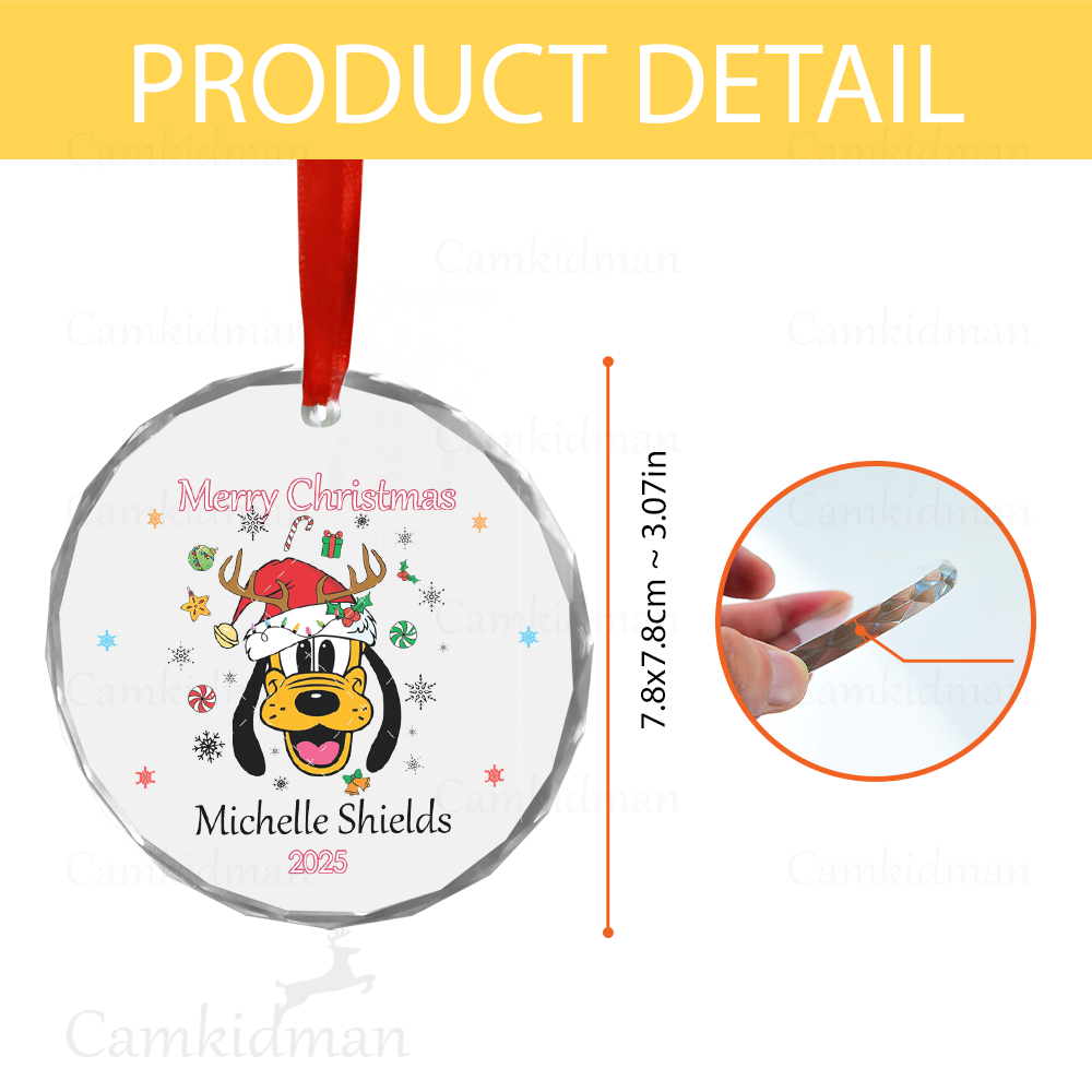 Personalized Name Christmas Dog with Antlers Glass Ornament 2025 Holiday Cartoon Glass Keepsake