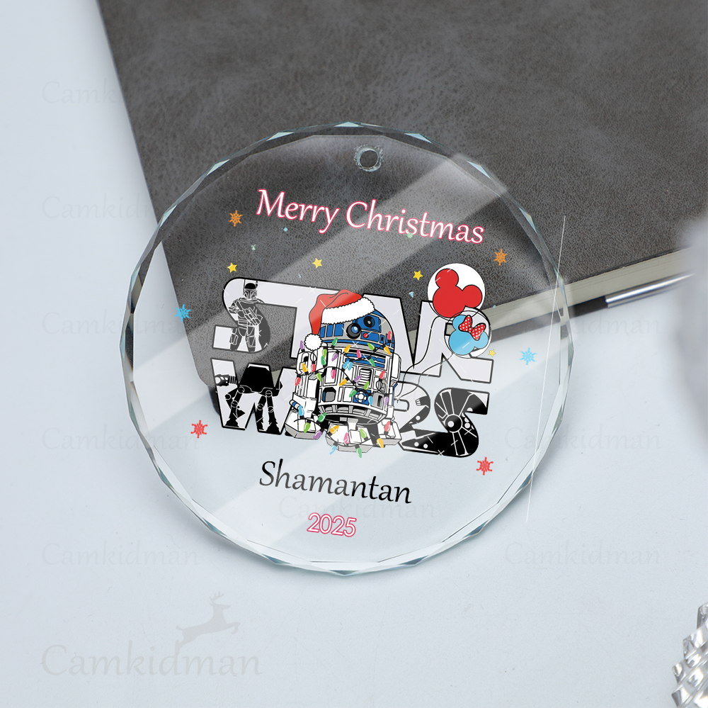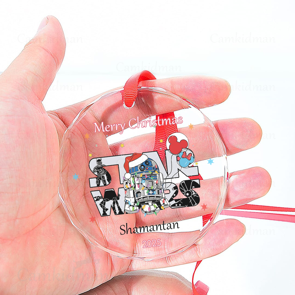Personalized Name Dad Disney Mickey Glass Ornament 2025 Glass Christmas Decoration