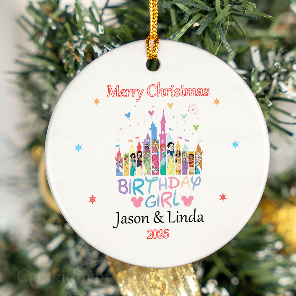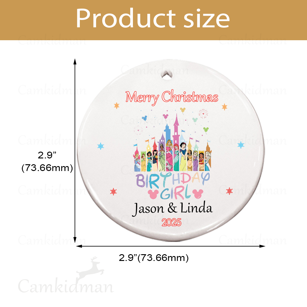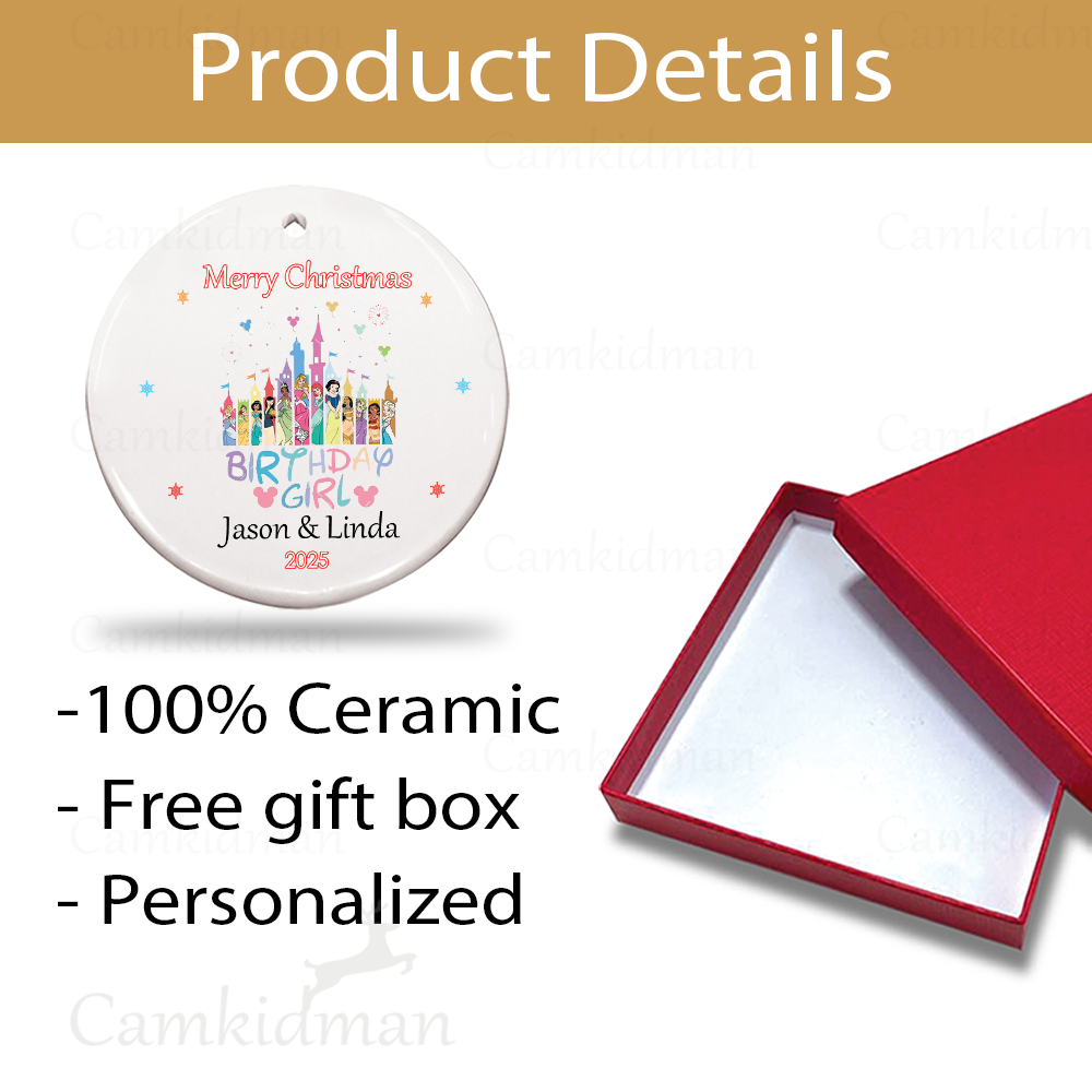 Personalized Name Disney Birthday Girl Castle 2025 Christmas Ceramic Ornament Glass Ornament gifts kids