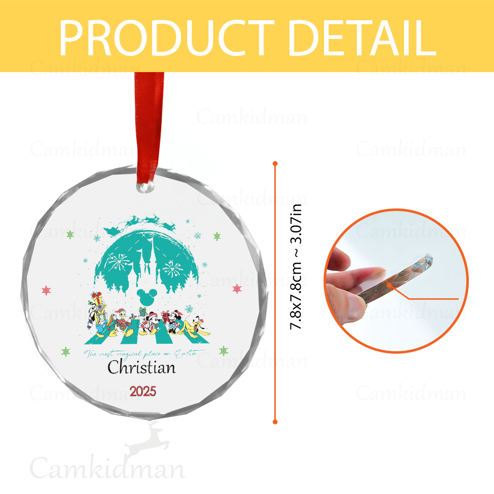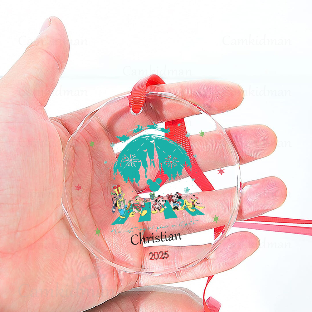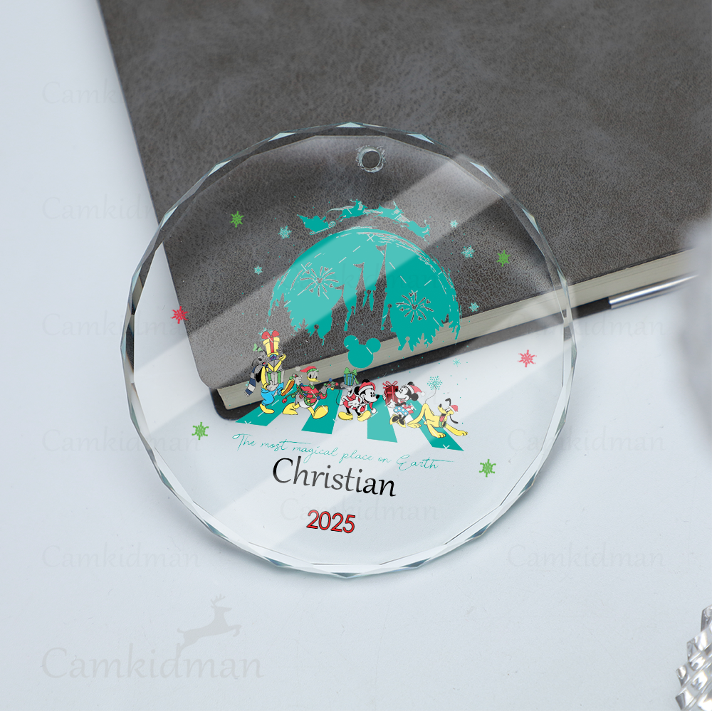 Personalized Name Disney Castle Magic Holiday Keepsake 2025 Glass Round Christmas Glass Ornament gifts family