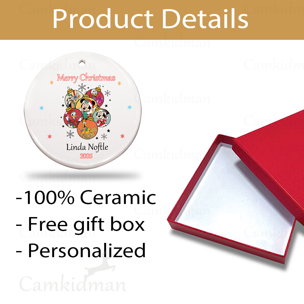 Personalized Name Disney Character Baubles 2025 Christmas Ceramic Ornament Glass Ornament gifts family