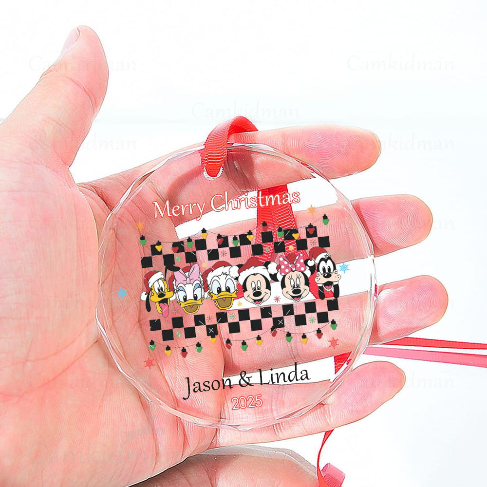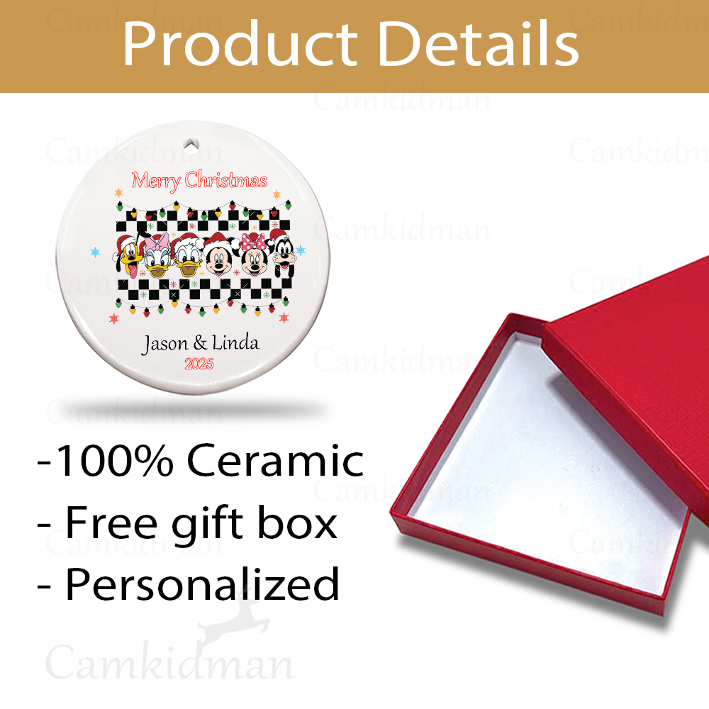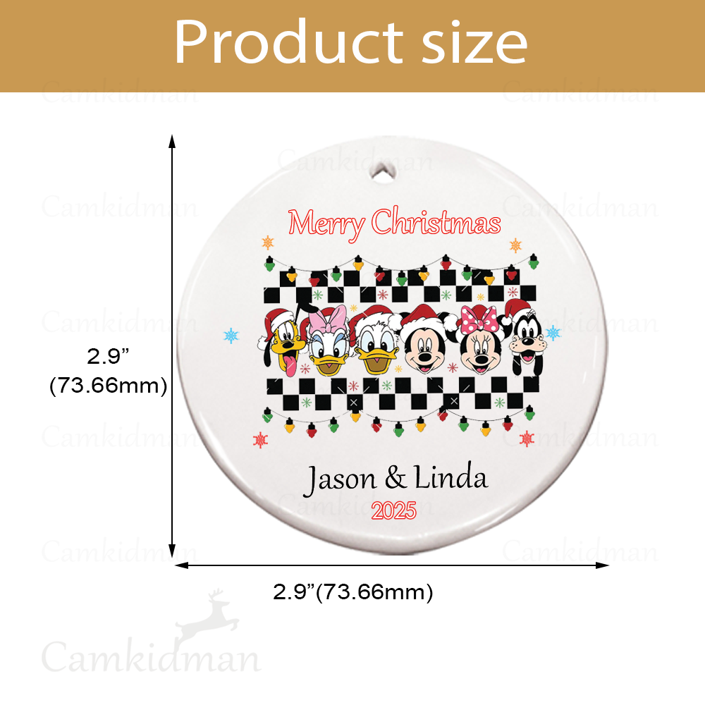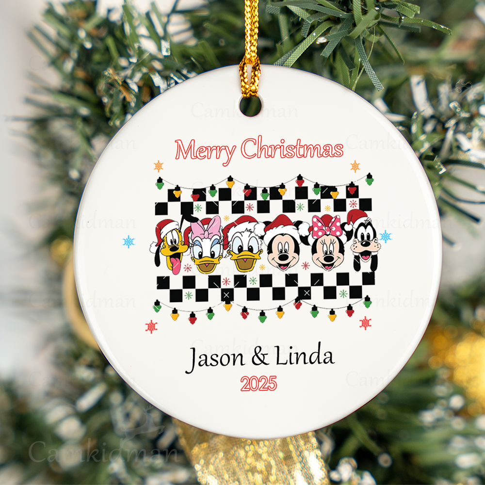 Personalized Name Disney Character Checkerboard 2025 Christmas Ceramic Ornament Glass Ornament gifts family