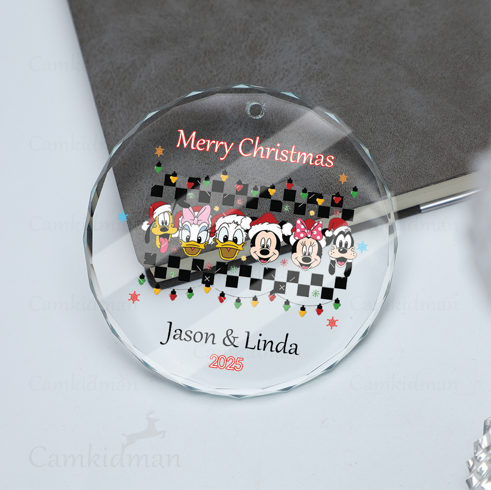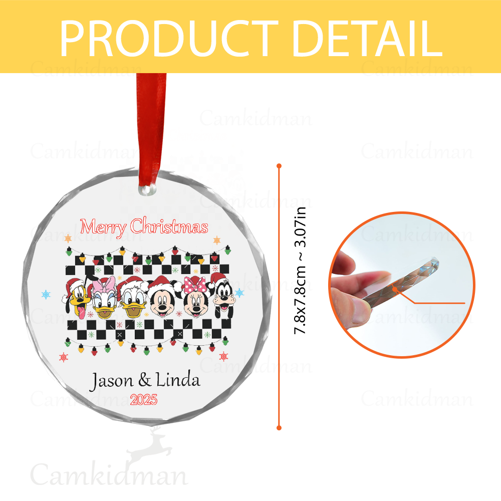 Personalized Name Disney Character Checkerboard 2025 Christmas Glass Ornament gifts family