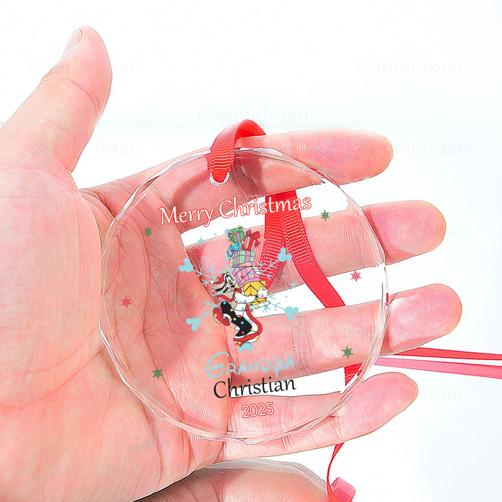Personalized Name Disney Characters Grandpa 2025 Glass Round Ornament