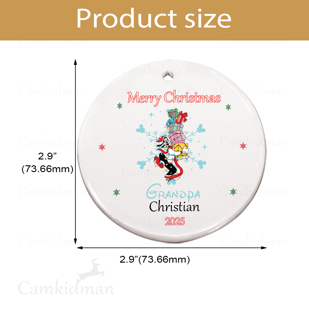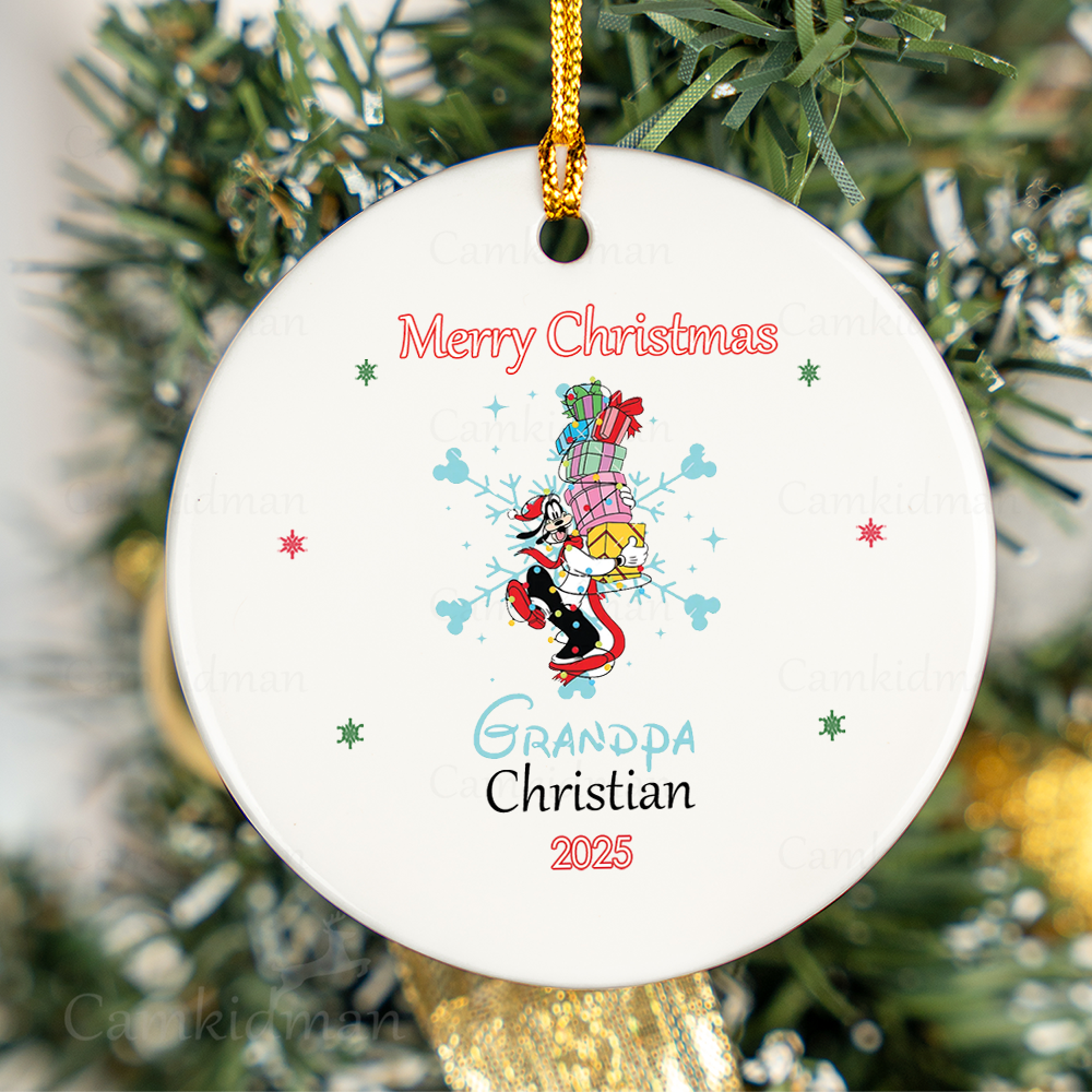 Be the first to review “Personalized Name Disney Characters Grandpa 2025 Glass Round Ornament”