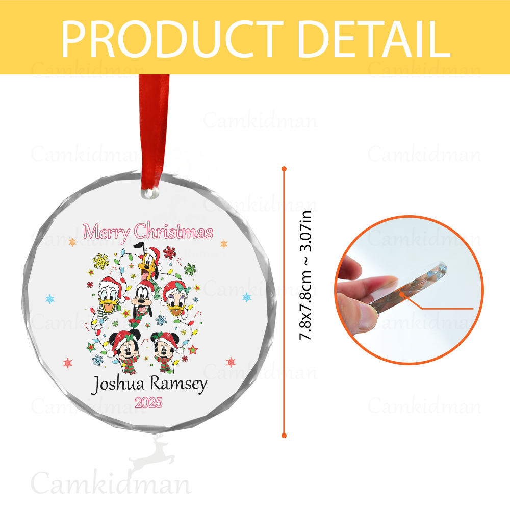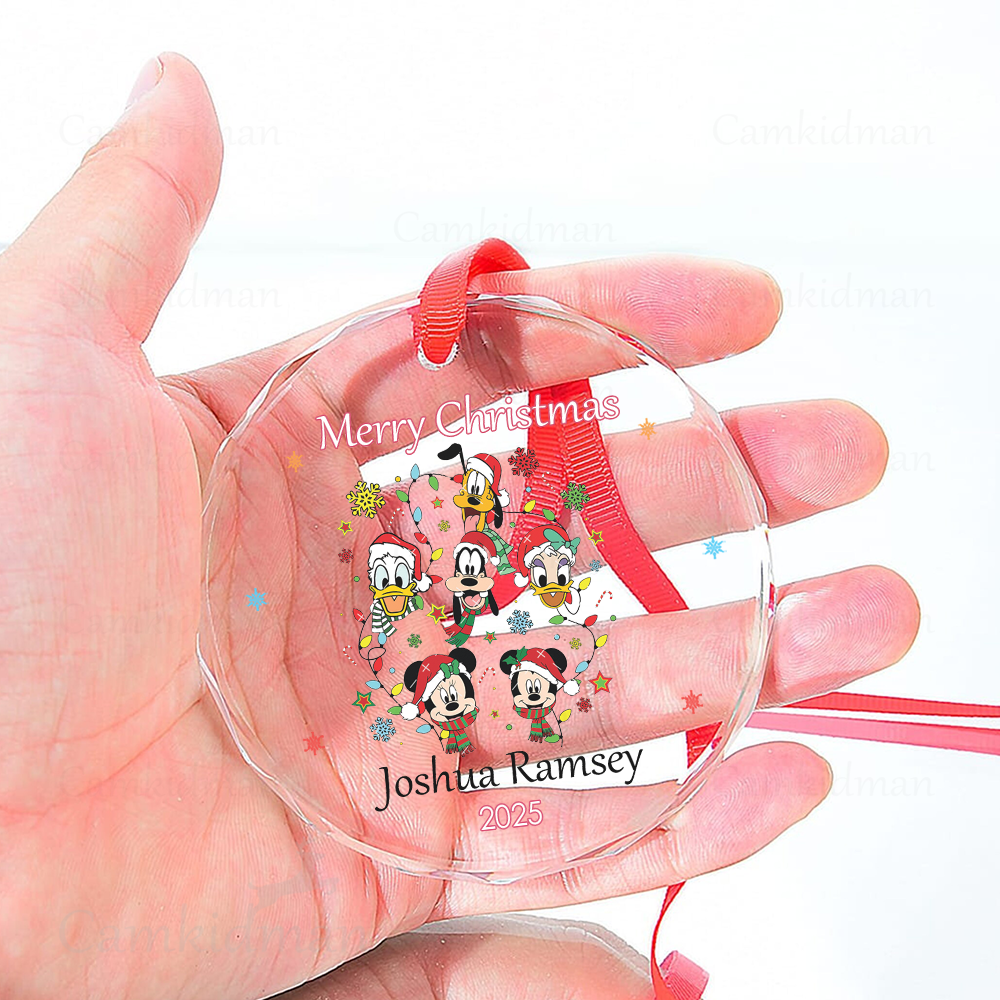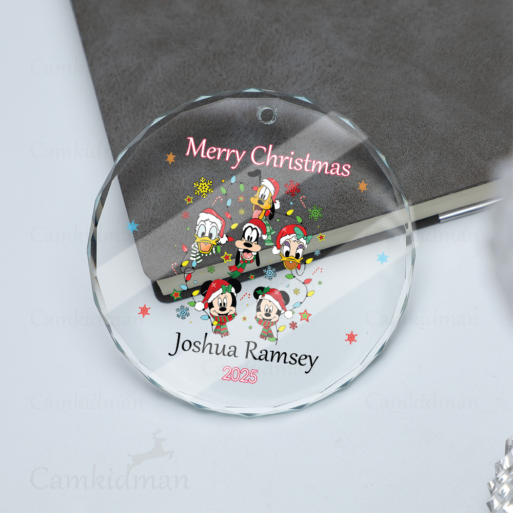 Personalized Name Disney Characters Group 2025 Christmas Glass Ornament