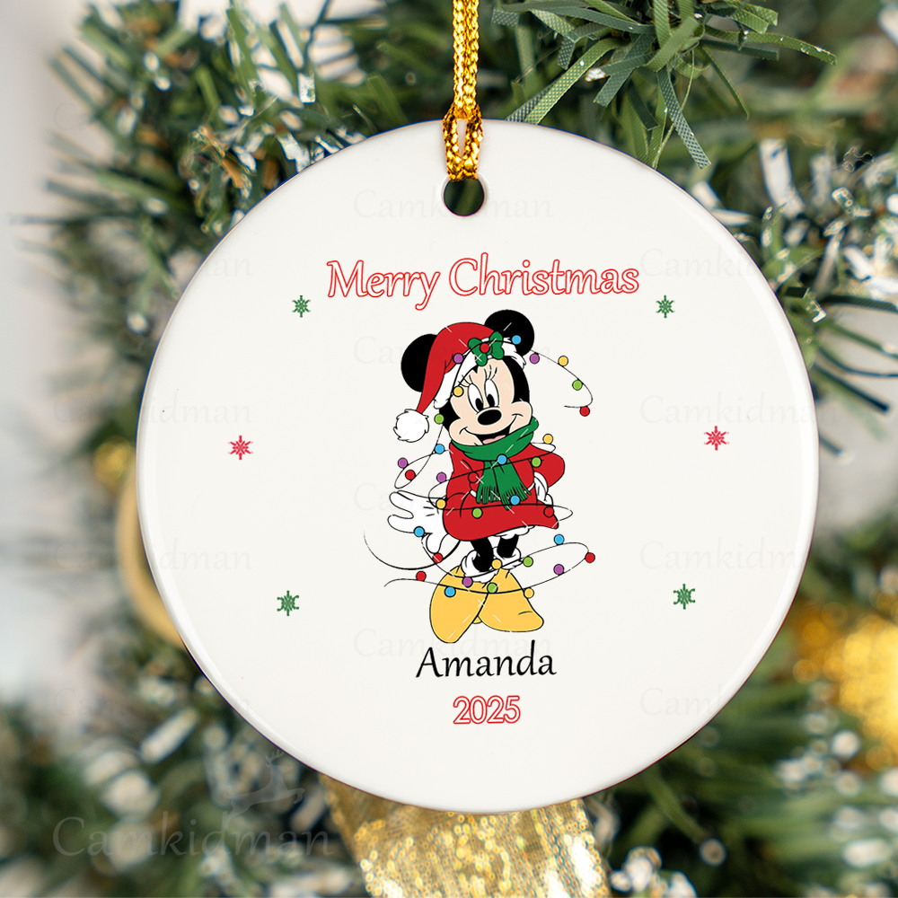 Personalized Name Disney Characters Very Merry Christmas Ceramic Ornament Glass Ornament 2025 Glass Holiday Gift