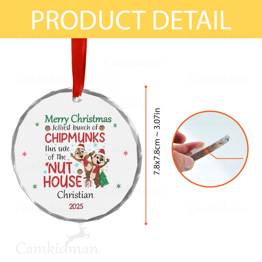 Be the first to review “Personalized Name Disney Chipmunks Nut House Quote 2025 Glass Round Ornament”