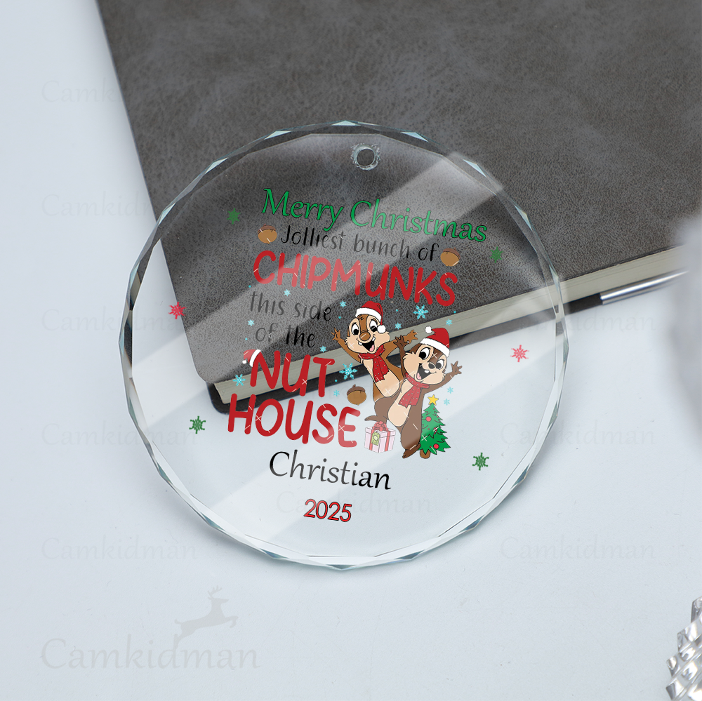 Personalized Name Disney Chipmunks Nut House Quote 2025 Glass Round Ornament
