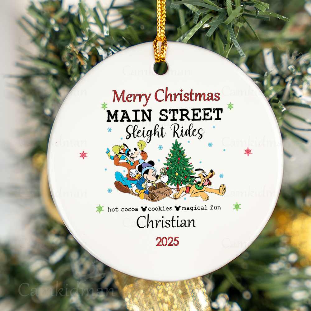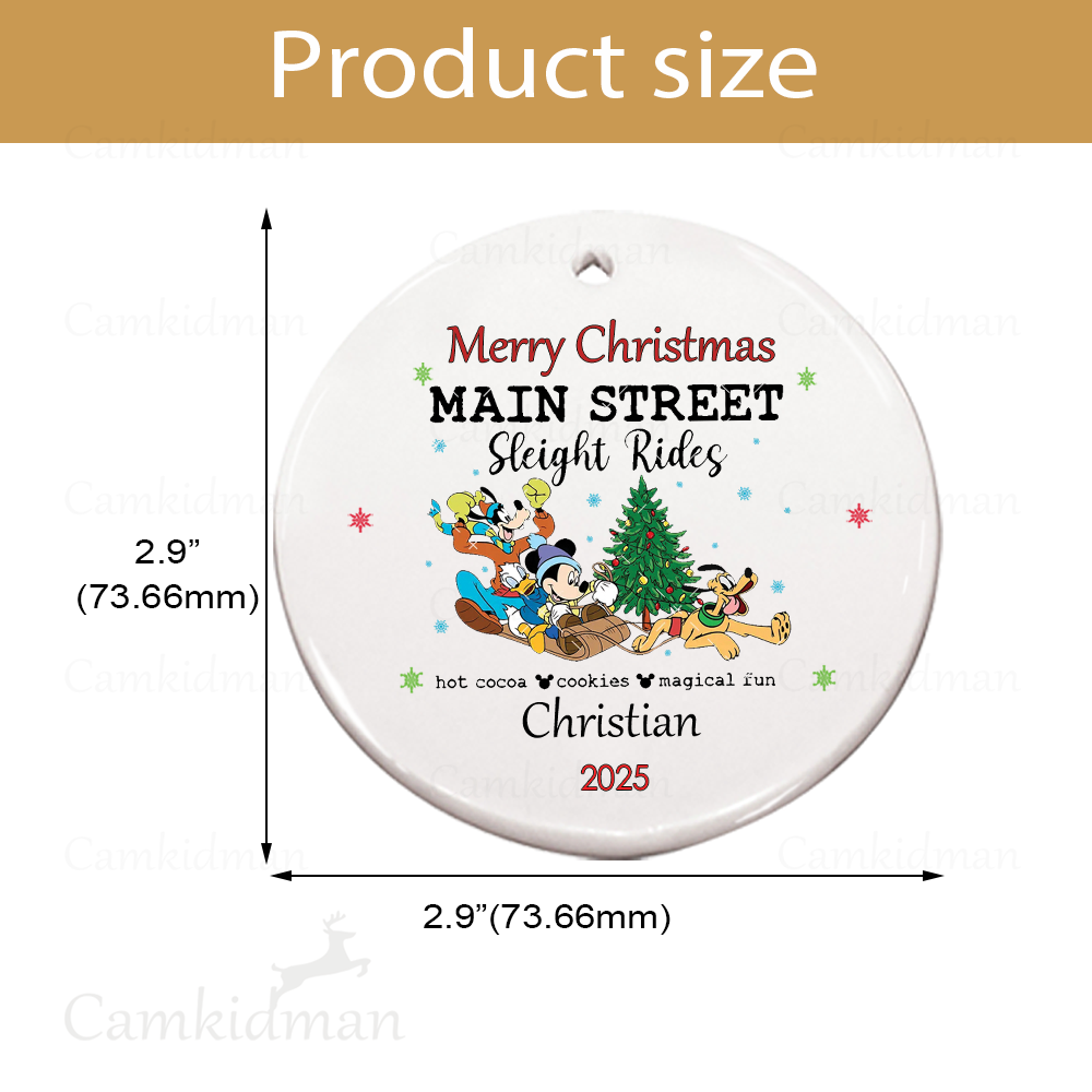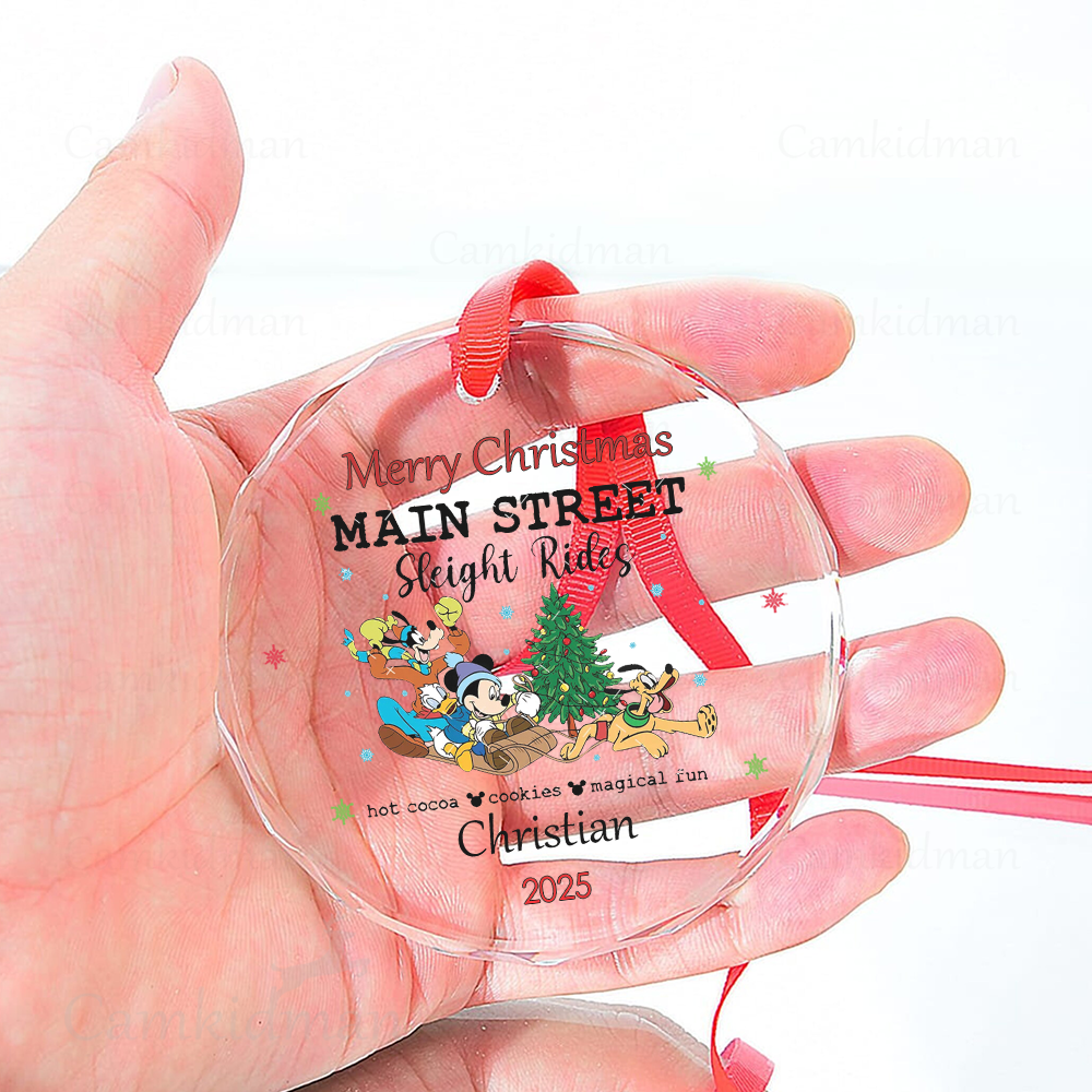Personalized Name Disney Main Street Sleigh Rides 2025 Glass Holiday Ceramic Ornament Glass Ornament Decoration