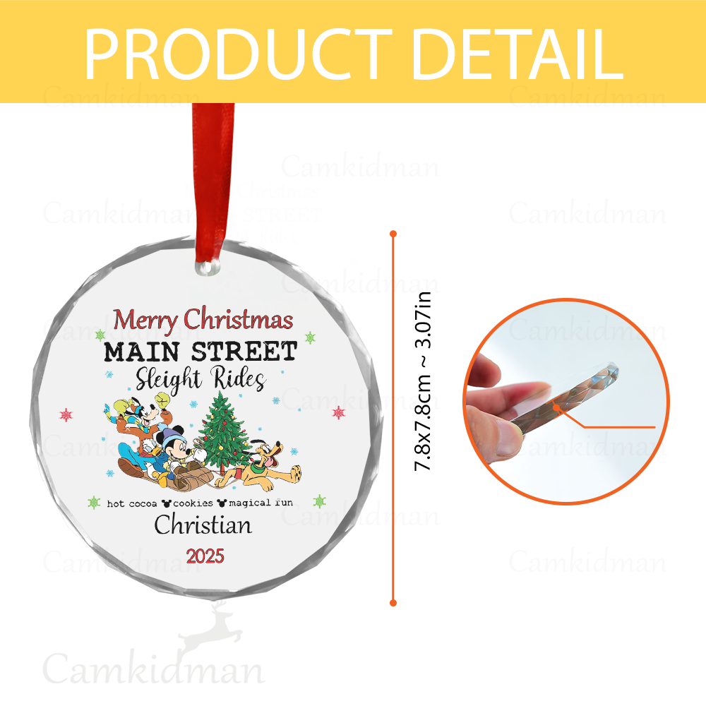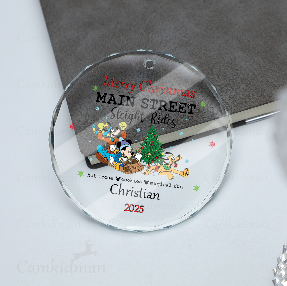 Personalized Name Disney Main Street Sleigh Rides 2025 Glass Holiday Glass Ornament Decoration
