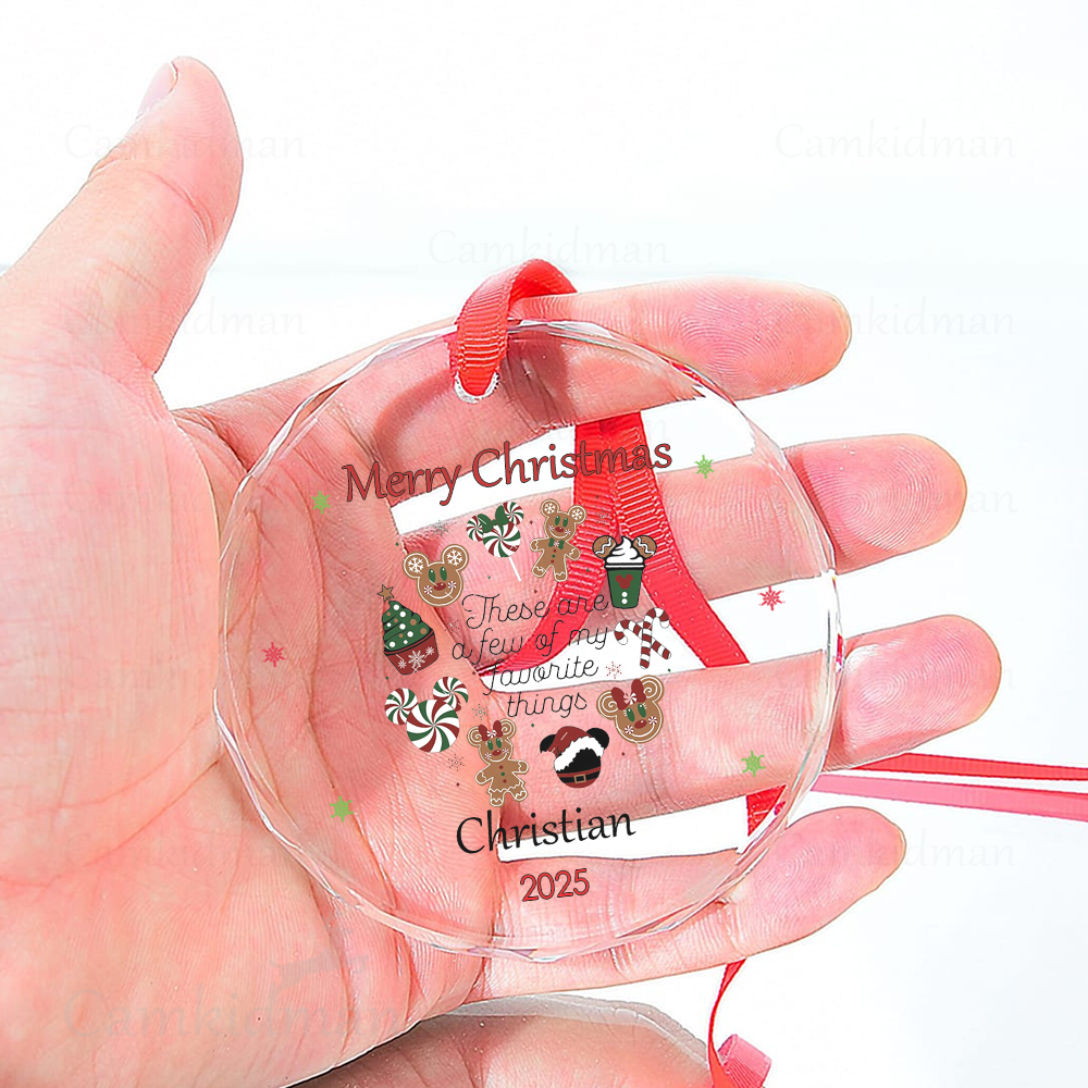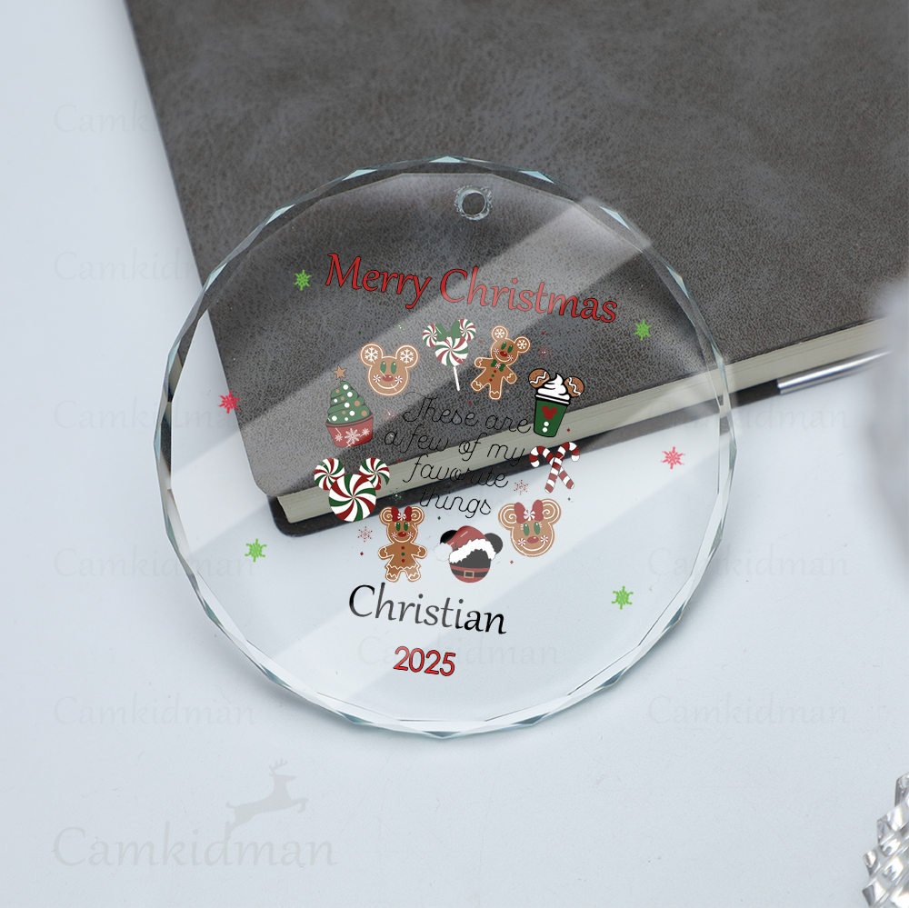 Personalized Name Disney Mickey and Friends Christmas Cookies 2025 Glass Round Ornament