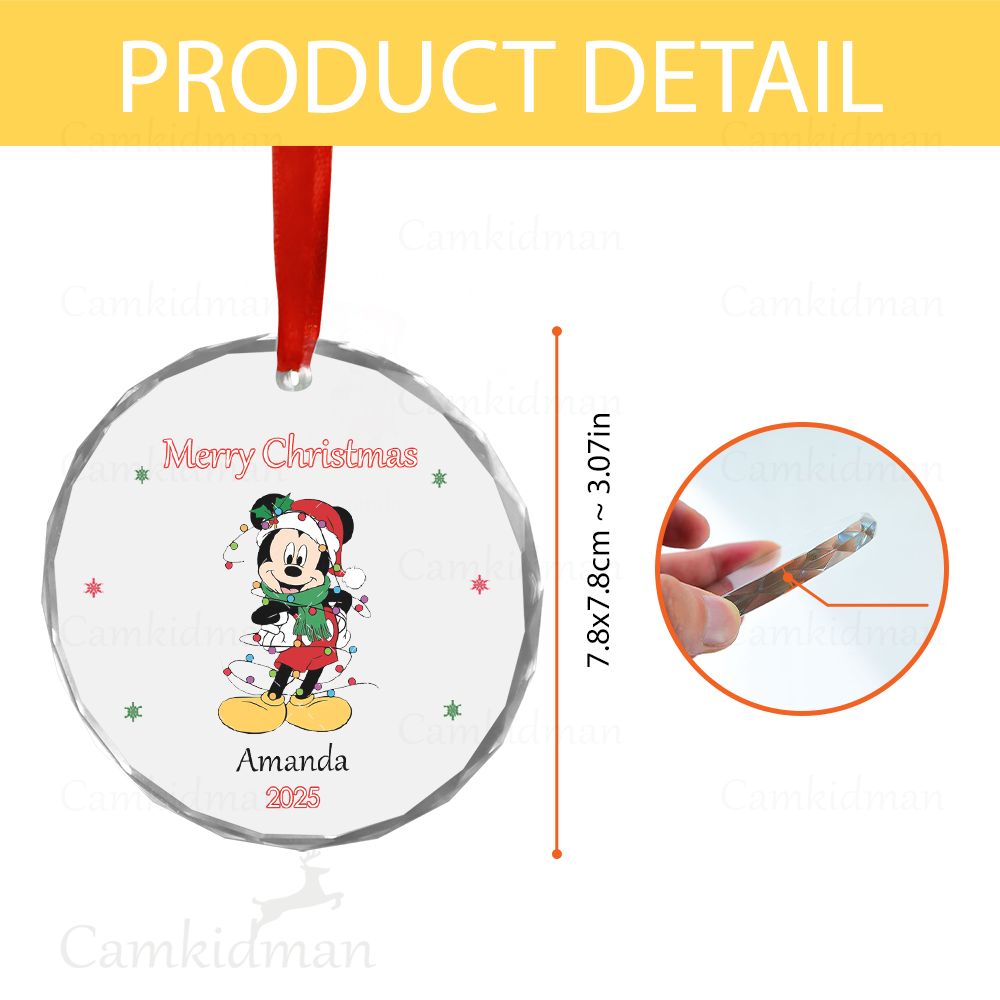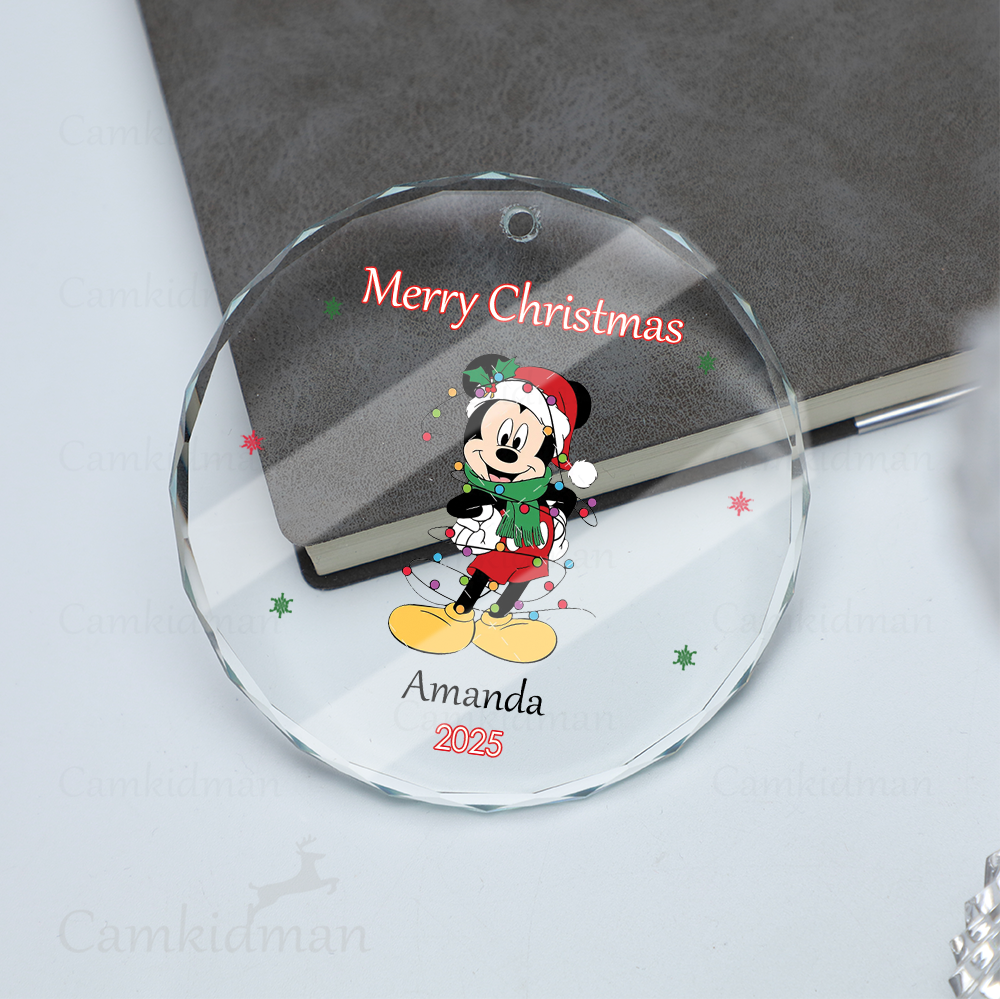 Personalized Name Disney Mickey Minnie Donald Holiday Party Glass Ornament 2025 Glass Decoration