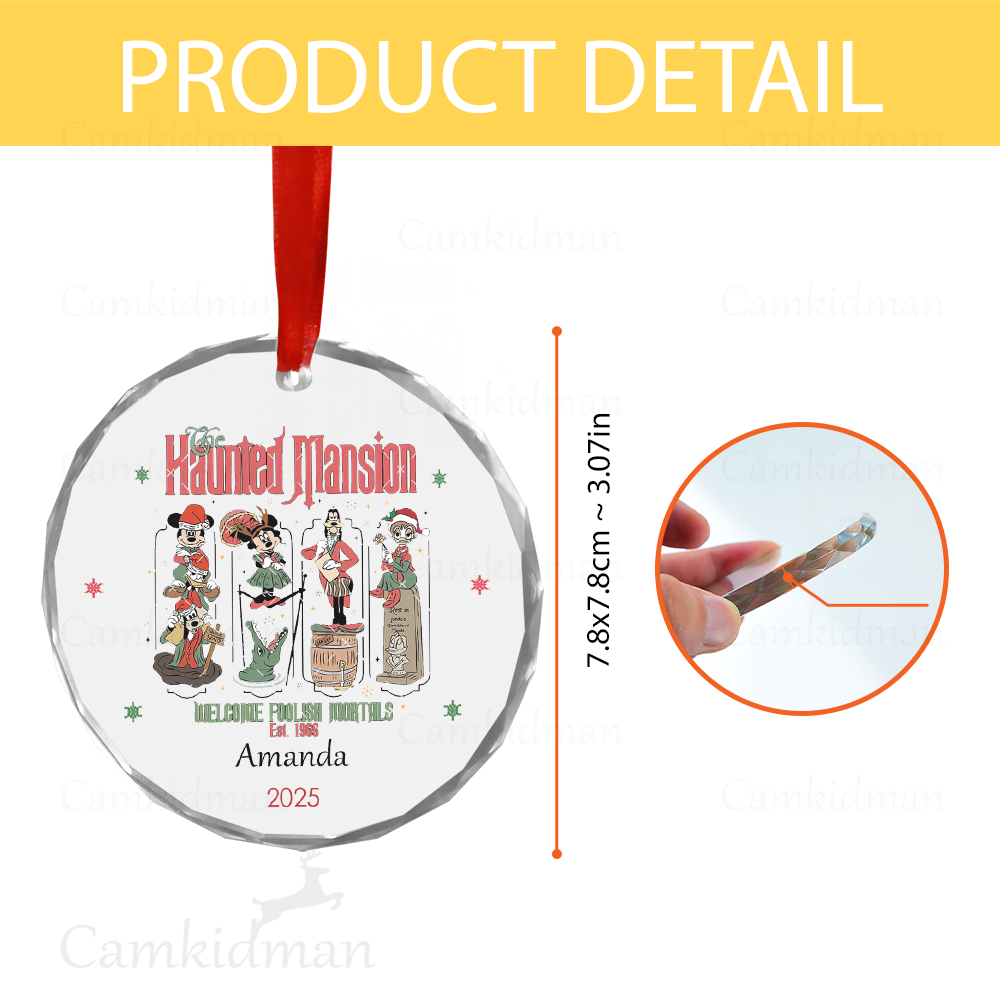 Personalized Name Disney Mickey & Minnie Holiday Scene Glass Ornament 2025 Glass Keepsake 2025