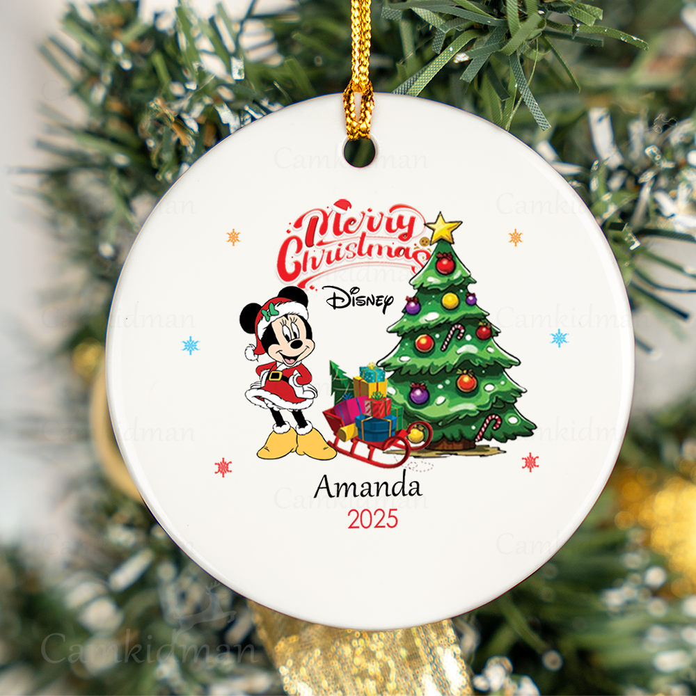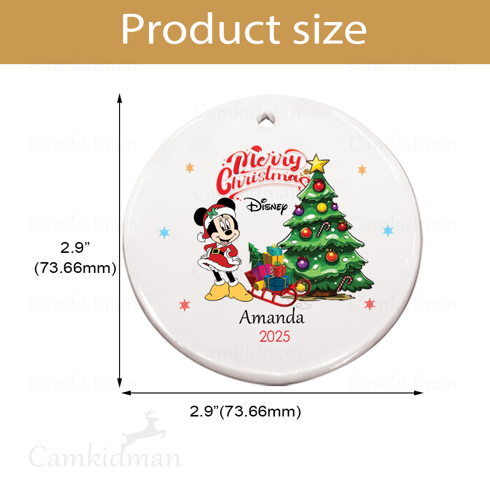 Personalized Name Disney Mickey with Christmas Tree Ceramic Ornament Glass Ornament