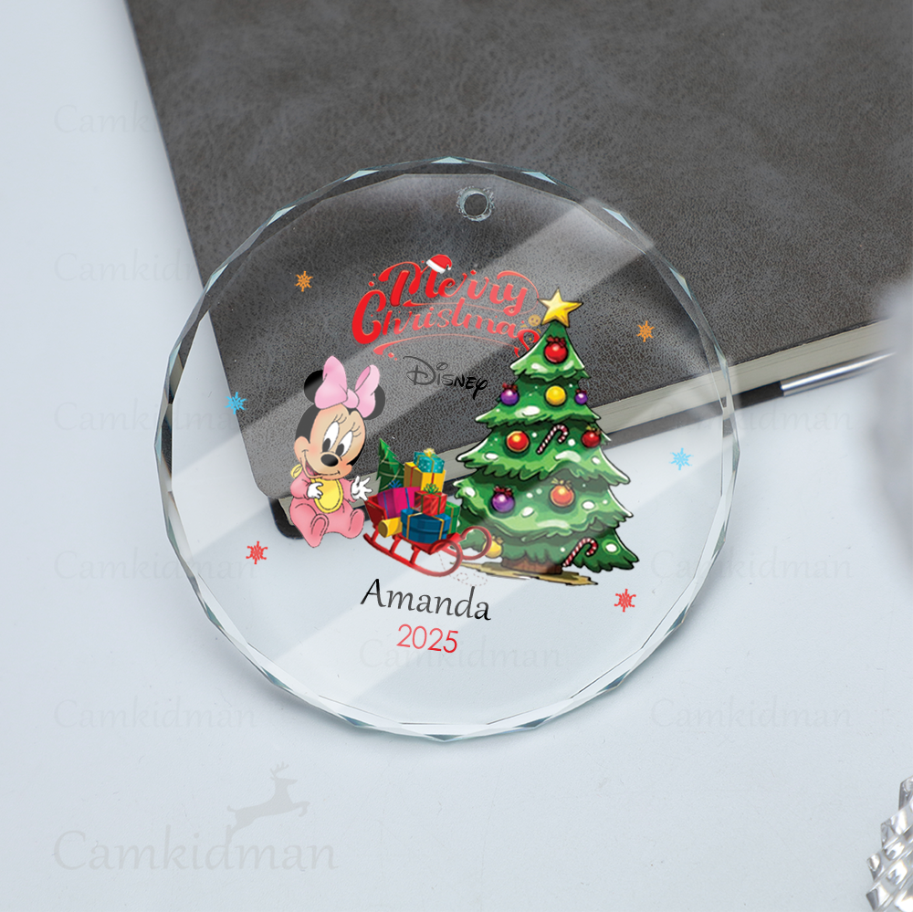 Personalized Name Disney Minnie Christmas Tree 2025 Glass Holiday Ornament