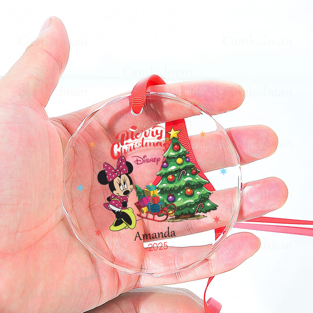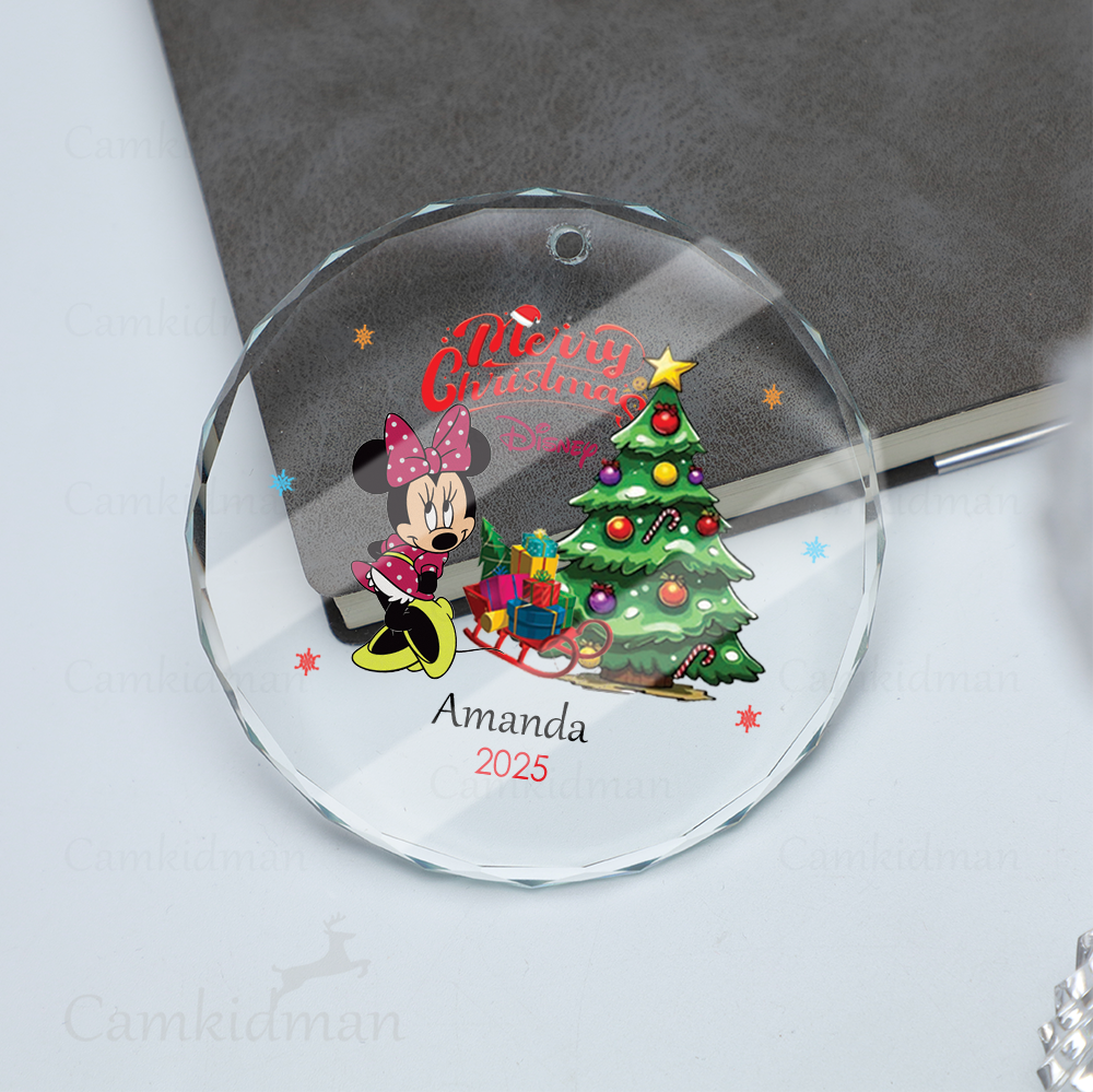 Personalized Name Disney Minnie Christmas Tree 2025 Glass Ornament