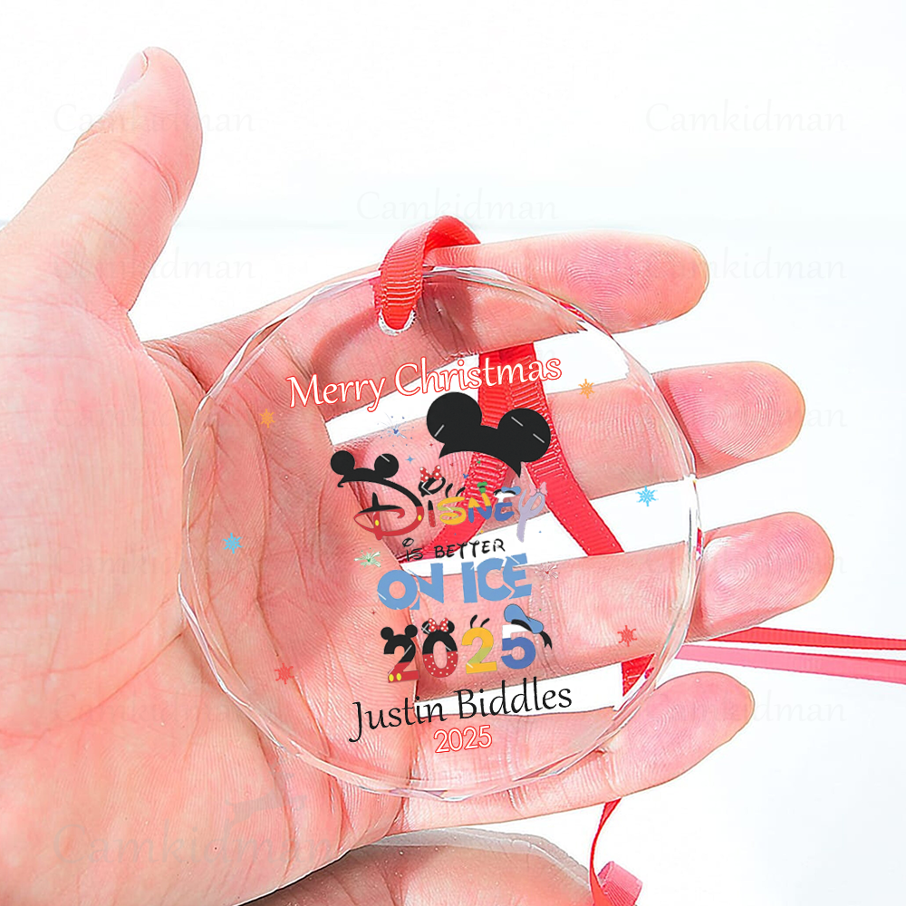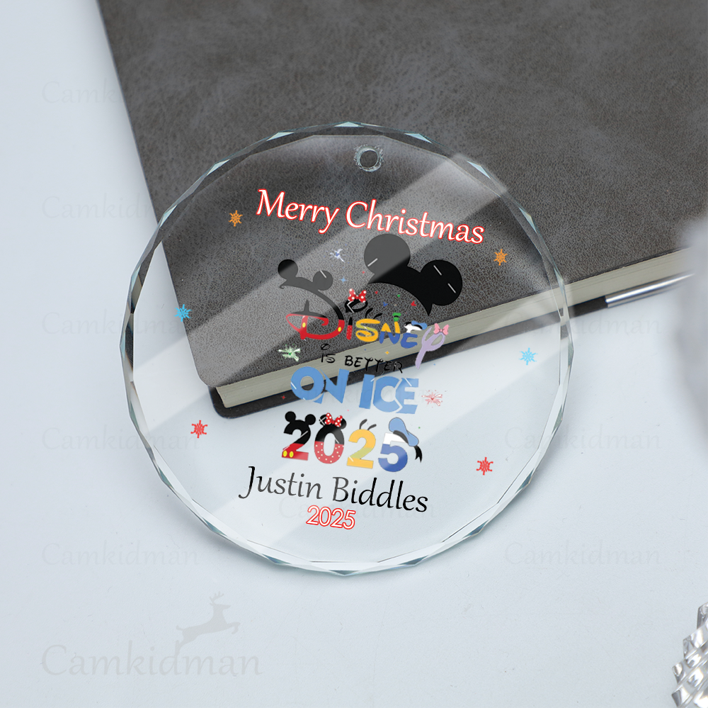 Personalized Name Disney On Ice Mickey 2025 Christmas Glass Ornament tree