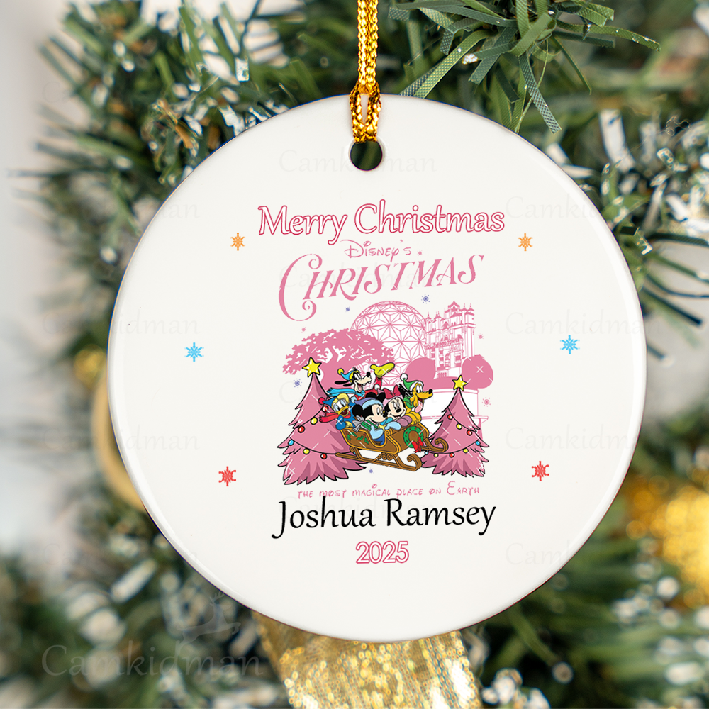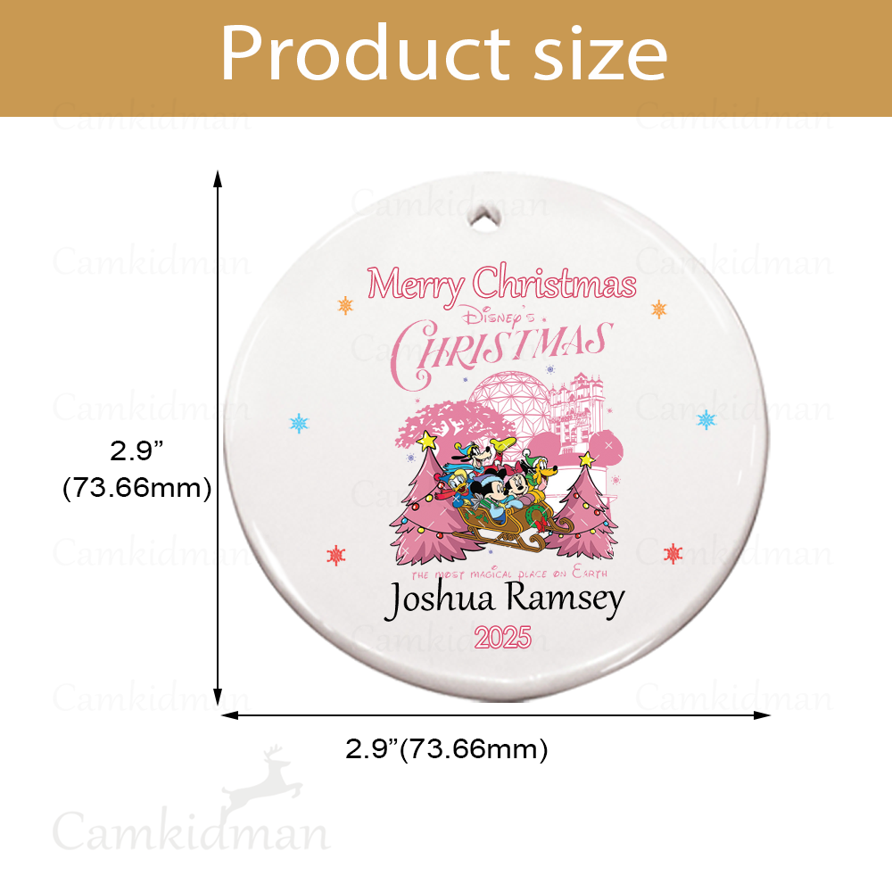Personalized Name Disney pink Christmas Tree Gifts 2025 Christmas Ceramic Ornament Glass Ornament