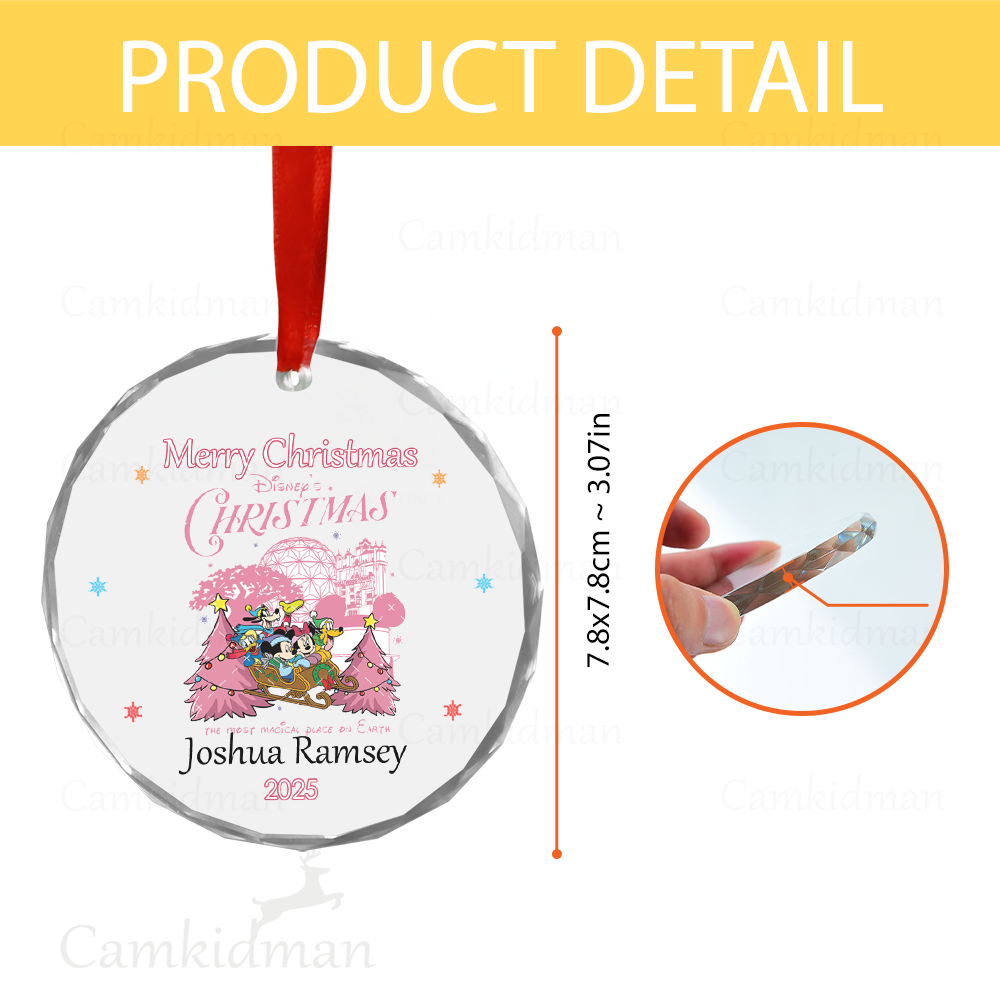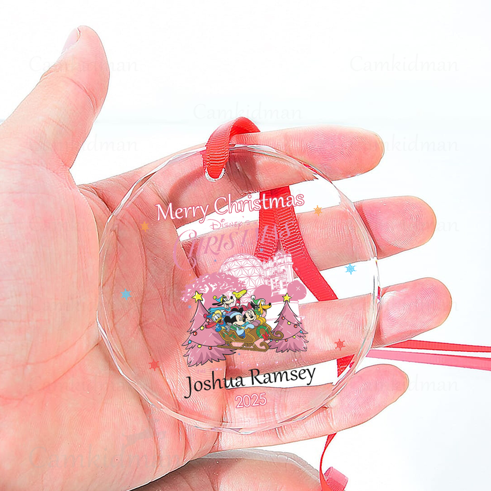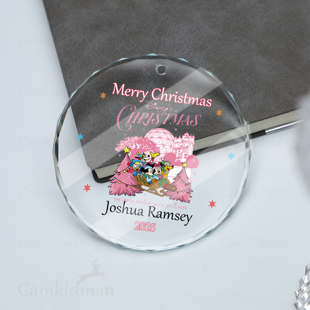 Personalized Name Disney pink Christmas Tree Gifts 2025 Christmas Glass Ornament
