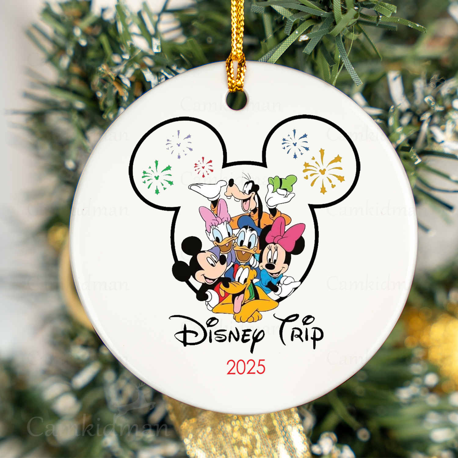 Personalized Name Disney Trip Mickey Minnie 2025 Christmas Ceramic Ornament Glass Ornament gifts family