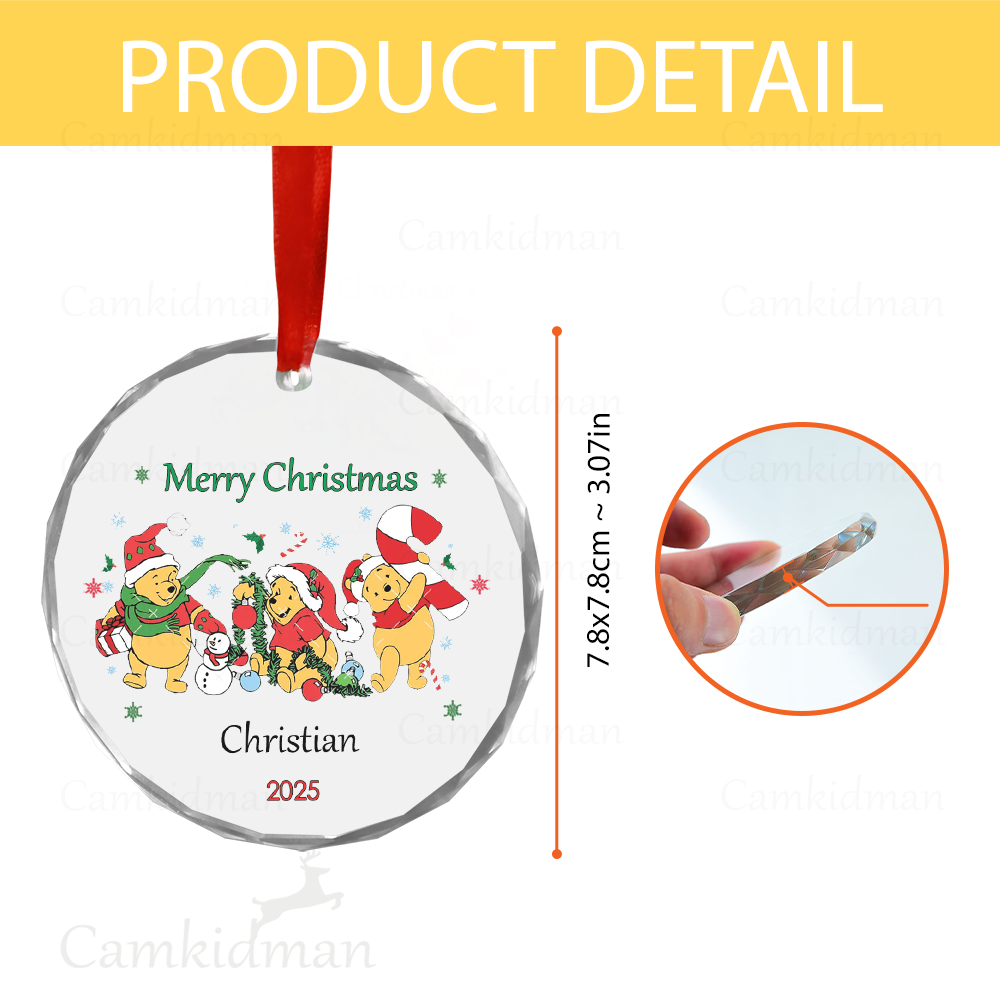Be the first to review “Personalized Name Disney Winnie the Pooh and Friends Christmas 2025 Glass Round Ornament”