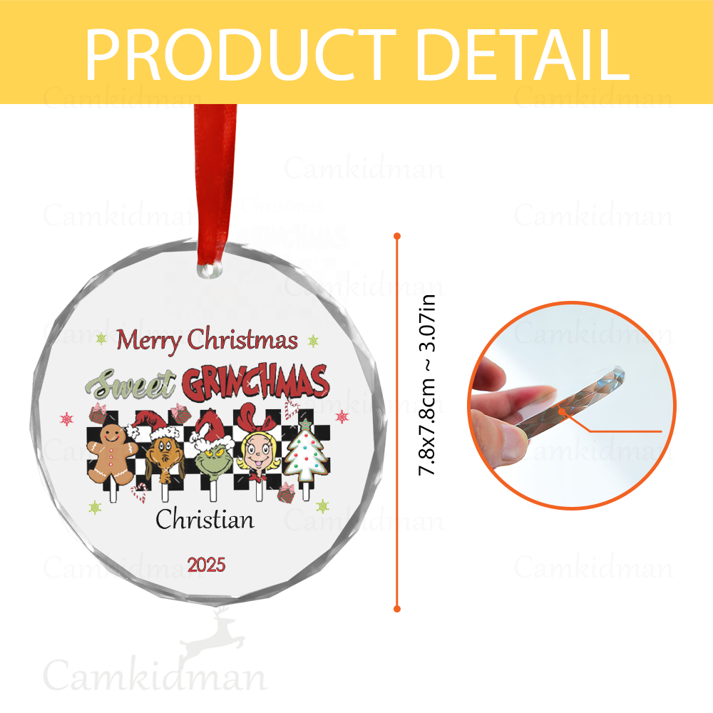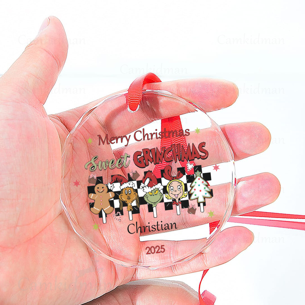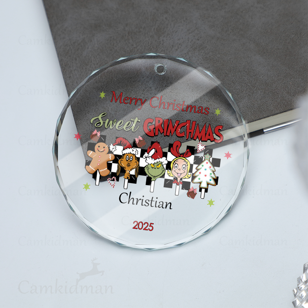 Sweet Grinchmas Family Stocking Stuffer 2025 Glass Christmas Ornament
